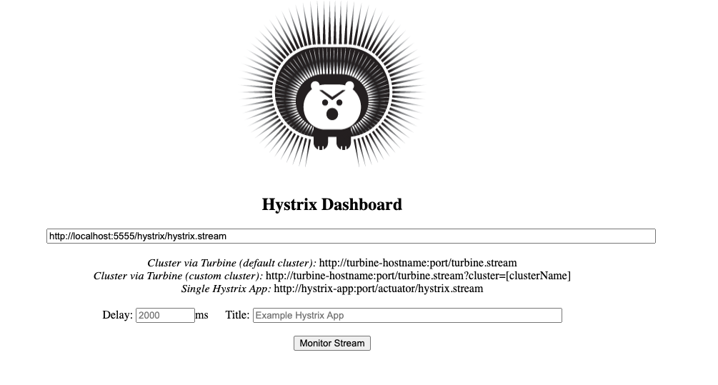 mvn spring-boot:run - Open a browser window and connect to the dashboard: http://localhost:7979/hystrix